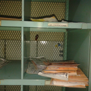 - Basta uma simples chuva para que as goteiras tomem conta do ambiente de trabalho, oportunidade que as caixas e caixetas plásticas que têm por finalidade o transporte de correspondências e impressos acabam sendo utilizadas como reservatório de água proveniente das goteiras;