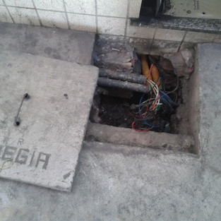 - Iluminação precária, com várias lâmpadas quebradas. Fiação, tomadas e caixas de distribuição elétrica expostas, sem tampa ou qualquer proteção. Luminárias com calhas amarradas de forma improvisada com lacre plástico que, por várias vezes, já despencaram no salão do entreposto e na área destinada ao atendimento ao público. Extensões elétricas improvisadas que podem, concretamente, ocasionar acidentes;